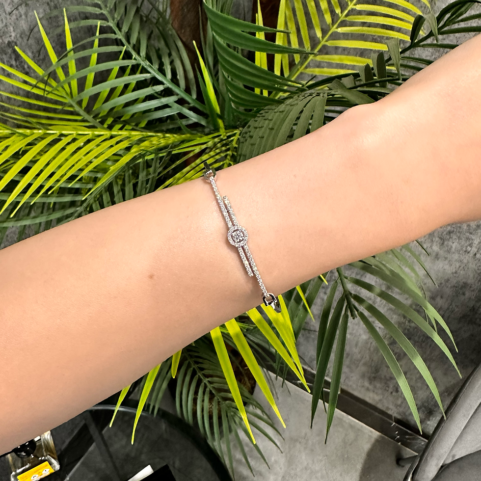 Vera – 14 Ayar Beyaz Altın Zincir Formlu Taş Detaylı Bilezik